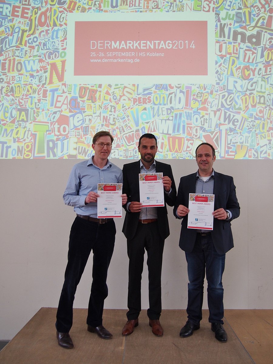 Der Konferenzbeitrag "A value-based typology of brand love relationships" von Jochen Kühn, Tobias Langner und Alexander Fischer ist auf der Tagung DERMARKENTAG2014 in Koblenz mit dem Best Paper Award ausgezeichnet worden.