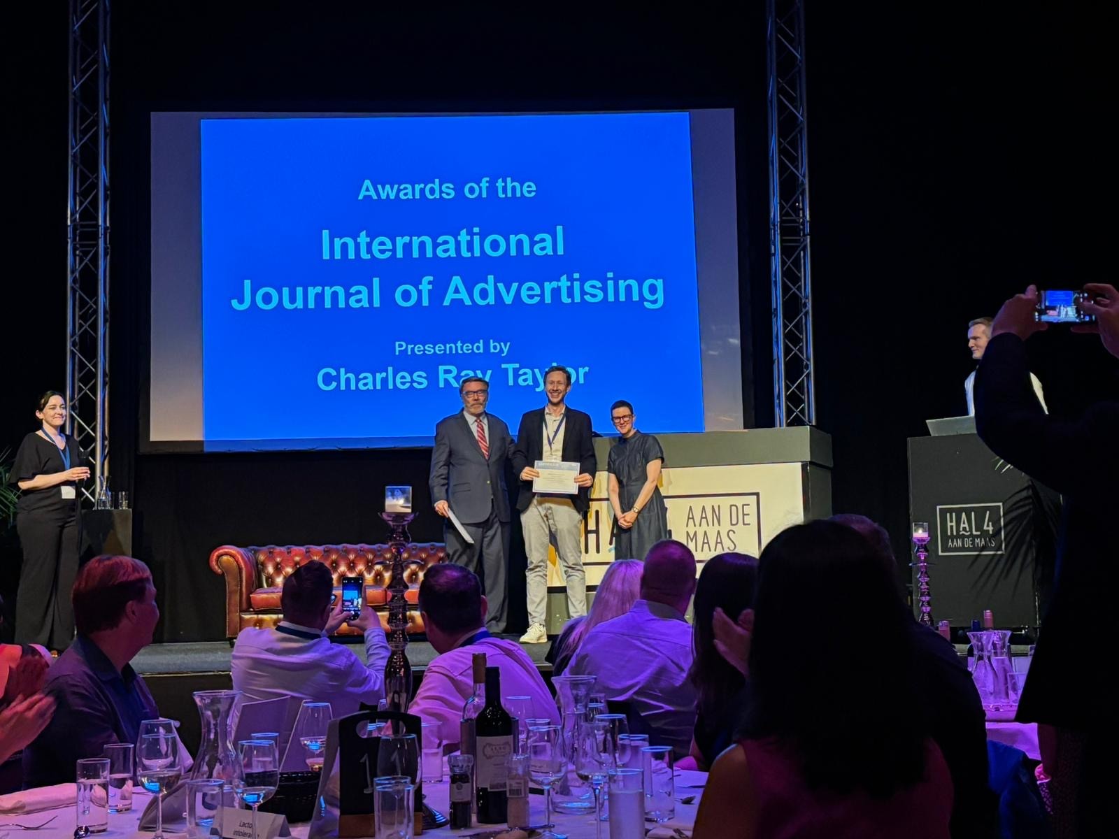 Im Rahmen des Gala Dinners der diesjährigen International Conference on Research in Advertising (ICORIA) in Rotterdam wurde Dr. Julian Felix Kopka mit dem Rising Star Award des International Journal of Advertising ausgezeichnet. Die Auszeichnung wurde ihm von Prof. Charles R. “Ray” Taylor, dem Editor-in-Chief des Journals und einem der führenden Köpfe der internationalen Marketing- und Werbeforschung, überreicht. Mit dem Rising Star Award würdigt das International Journal of Advertising junge Nachwuchswissenschaftlerinnen und -wissenschaftler, die durch herausragende wissenschaftliche Beiträge und ihr besonderes Engagement als Reviewer zur internationalen Werbeforschung beitragen.
