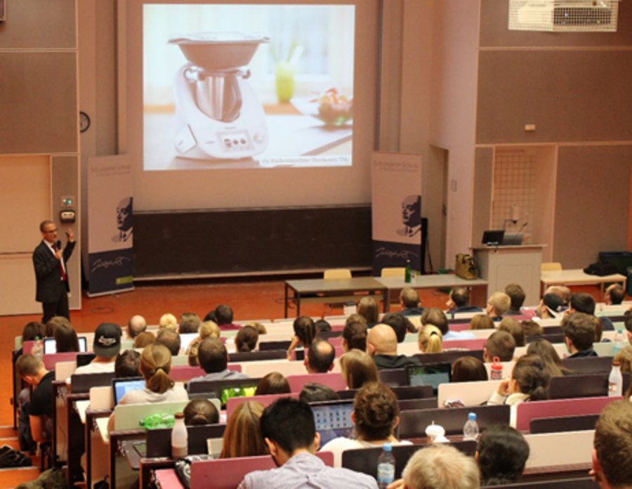 Im zweiten Vortrag von „Excellence in Branding“ gewährte Martin Berger von Vorwerk spannende Einblicke hinter die Kulissen der Markenführung des Wuppertaler Traditionsunternehmens. Neben den Studierenden fanden auch zahlreiche Gäste aus der Region den Weg in den Hörsaal an der Bergischen Universität.