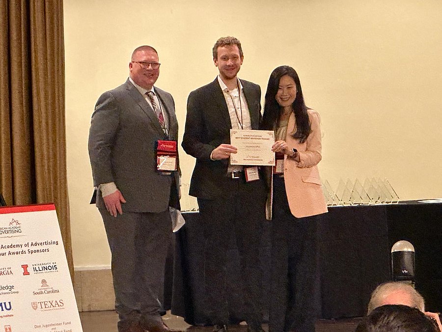 Dr. Julian Felix Kopka, wissenschaftlicher Mitarbeiter am Lehrstuhl für Marketing von Professor Tobias Langner, wurde auf der Annual Conference der American Academy of Advertising (AAA) 2025 mit dem Outstanding SRT Reviewer Award des Journal of Advertising ausgezeichnet. Die Preisverleihung erfolgte durch Jisu Huh, Editor-in-Chief des renommierten Fachjournals, und Jameson Hayes, Präsident der American Academy of Advertising.