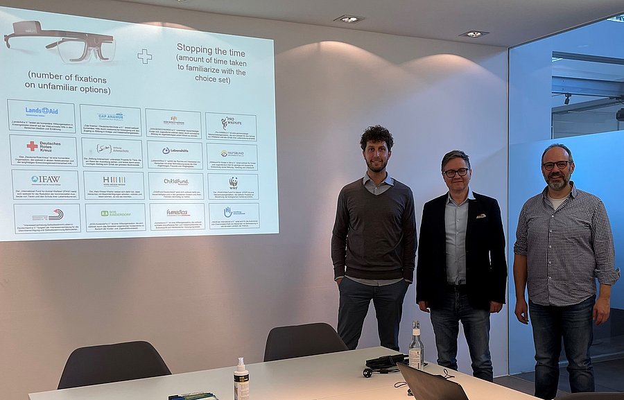 Tobias Klinke, Bernd Schmitt and Tobias Langner (from left to right) at one of their research meetings in Freiraum, the innovation lab at the University of Wuppertal
