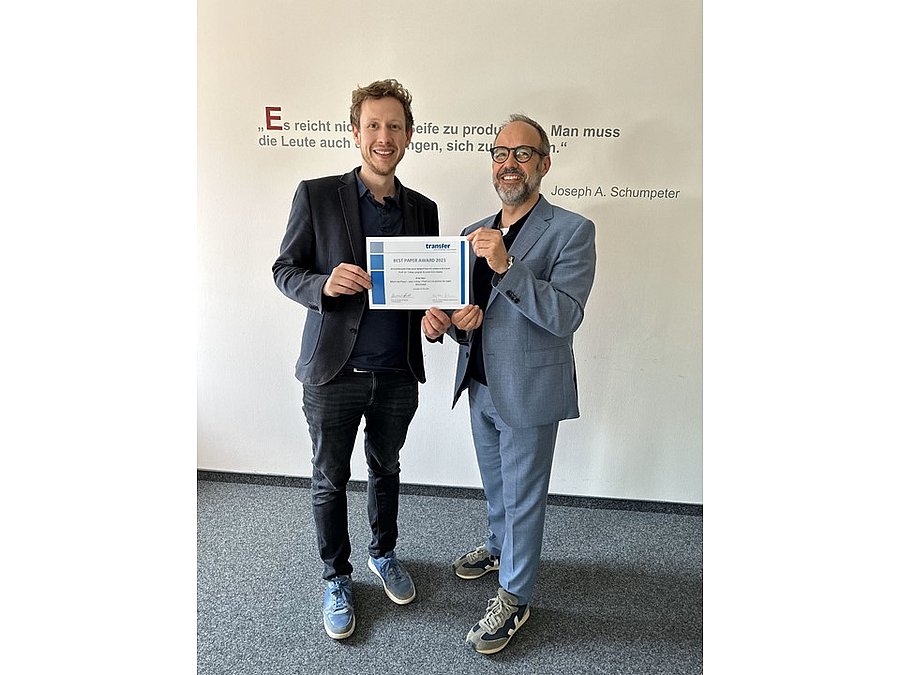 Tobias Langner and Julian Felix Kopka were honoured by the German Advertising Research Association (DWG ) for their paper "Take a break - but do it right! Effective incubation for more creativity" with the Best Paper Award of transfer - Zeitschrift für Kommunikation und Markenmanagement .