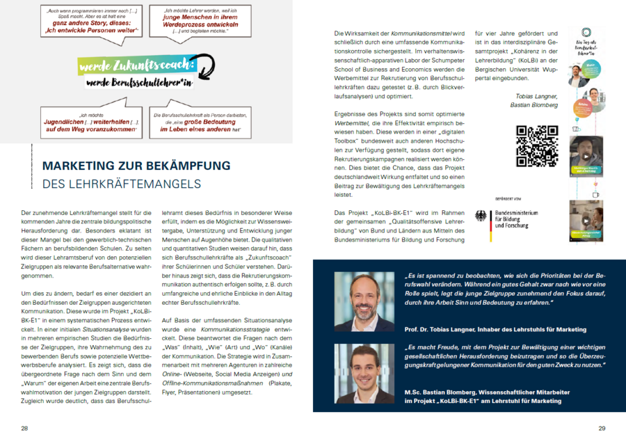 The project, funded by the Federal Ministry of Education and Research, was supervised by Tobias Langner and Bastian Blomberg from 2020 to 2023. It is dedicated to developing communication to combat the shortage of teaching staff across Germany. A communication strategy was developed in a systematic process, which was then implemented in demonstrably effective online and offline communication measures.