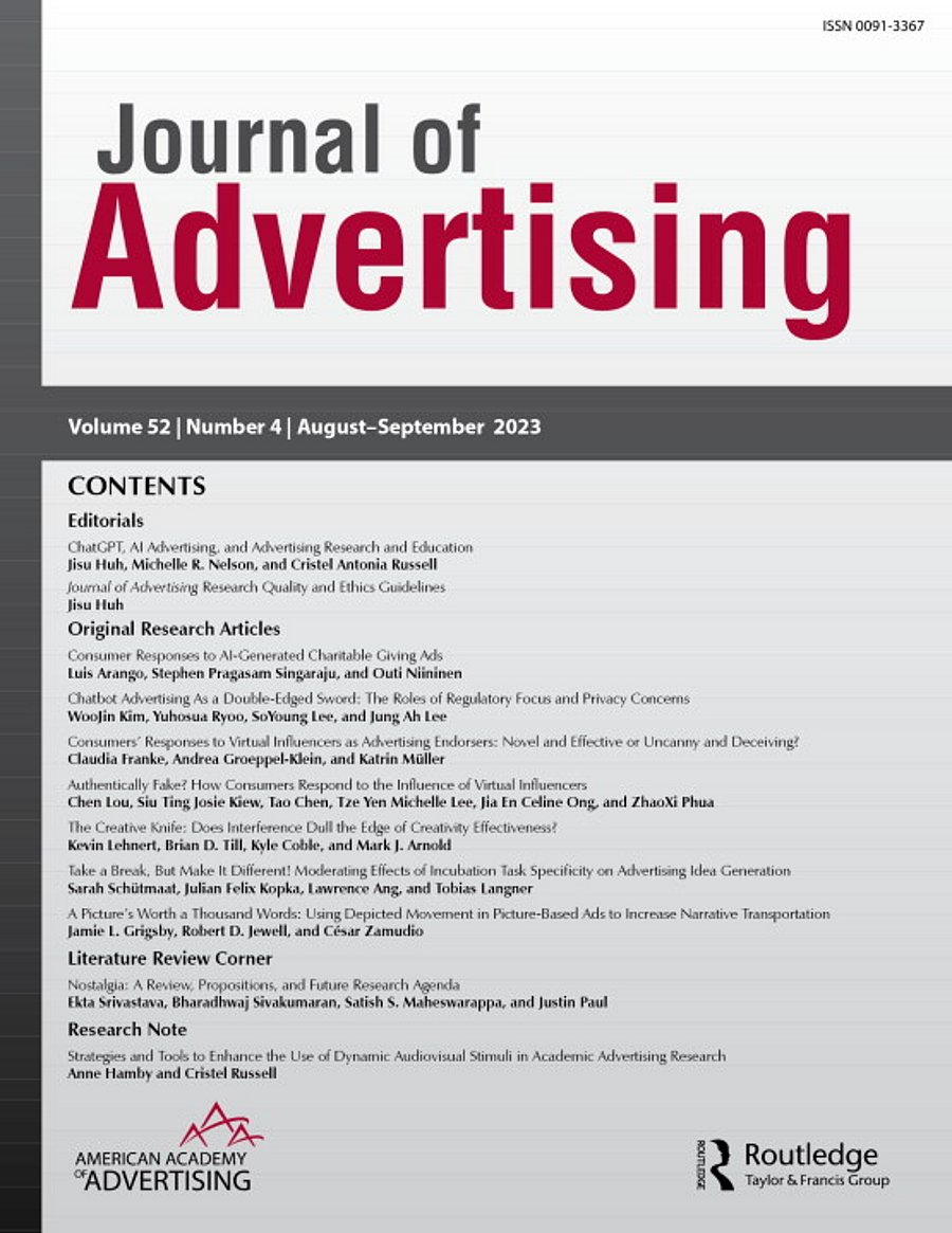 The article "Take a Break, But Make it Different! Moderating Effects of Incubation Task Specificity on Advertising Idea Generation" has been published in the Journal of Advertising (Volume 52, Issue 4).