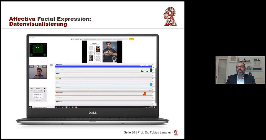 The impact of brand communication is being researched there with the help of equipment such as eye-tracking, emotion recognition, skin resistance measurement and EEG. Right at the beginning, Tobias Langner emphasised the central hurdles of communication and the benefits of the laboratory procedures: "In order to be successful, brand communication must succeed in establishing contact with the recipient, triggering emotions and conveying information. We can analyse whether and why a communication measure succeeds in doing this in our laboratory."