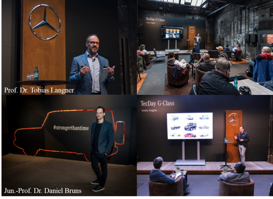 The new Mercedes G-Class was presented to the international trade press in Metzingen from 6 to 10 November 2017. Prof Dr Tobias Langner and Junior Prof Dr Daniel Bruns were invited as scientific experts to explain what makes a brand icon in several presentations. The two brand experts explained the features that make the G-Class an icon and how it manages to provide customers with an exceptional product experience. The findings from their own research work on the subject of brand love played a central role in these explanatory approaches, with Gunnar Guethenke, CEO of Mercedes-Benz G GmbH, providing further insights into the development of the G-Class.
