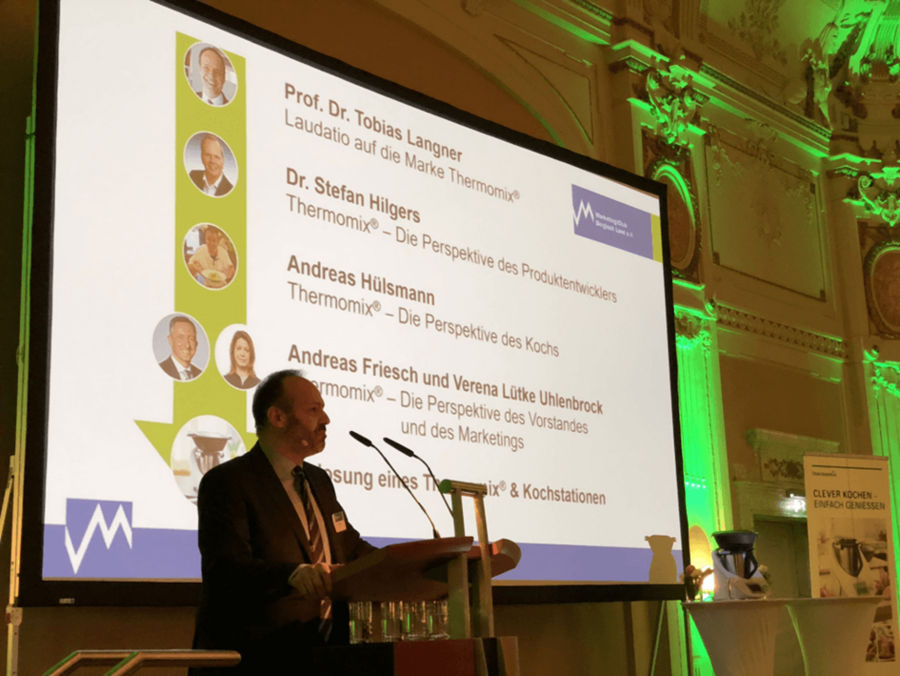 On 25 January 2018, the Bergisch Land Marketing Club hosted a festive event to kick off the year as part of its 40th anniversary celebrations. The event focussed on the Wuppertal-based company Vorwerk, which was awarded the German Marketing Prize for its Thermomix product range last year. In his laudatory speech, Professor Tobias Langner emphasised the outstanding marketing strategy of the Thermomix. Above all, the strong brand loyalty and the great significance that the kitchen miracle has in the lives of customers became clear in various forums.